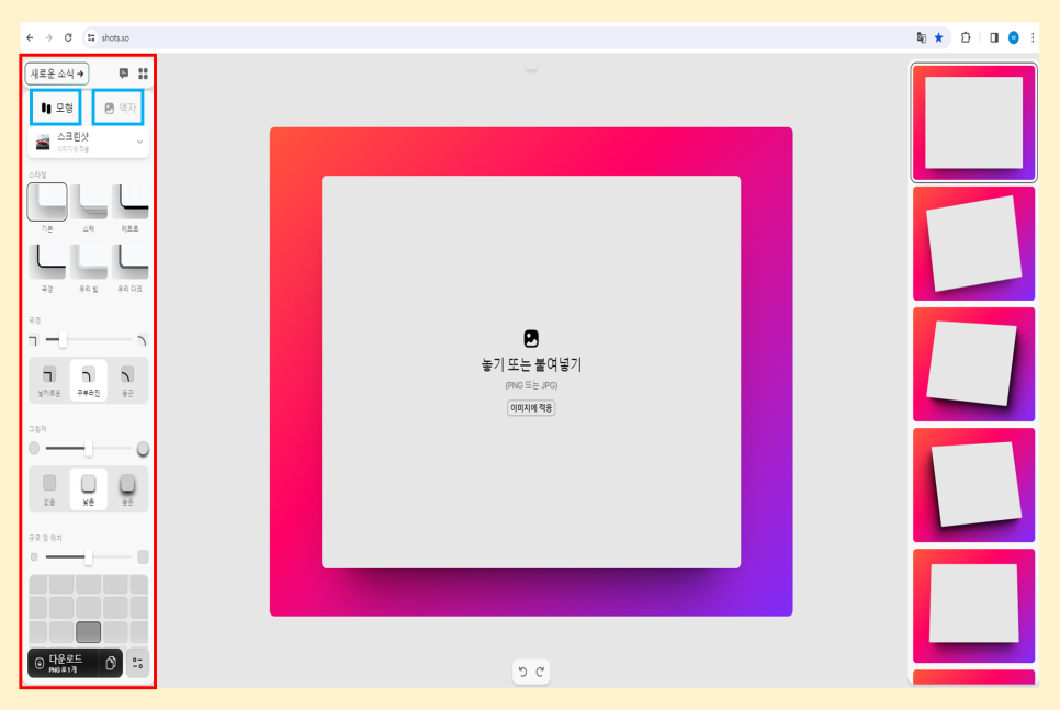 앞으로는 포토샵대신 무료 목업 사이트 shots.so 여기만 알고 계시면 됩니다.