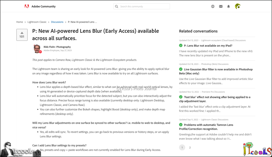어도비 라이트룸 최신 버전인 13.02 버전을 기준으로 렌즈 흐림 효과를 미리 사용해 볼 수 있는데요. 어도비는 이러한 미완성 기능을 얼리 액세스(Early Access)로 제공합니다. ※얼리 액세스란 아직 완전히 개발되지 않은 소프트웨어나 게임 등을 임시로 허용하는 단계입니다.