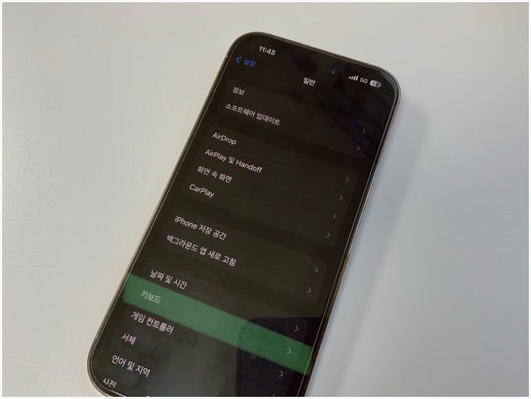 해당 메뉴로 들어가서 아래로 내려보면 [키보드] 라는 항목이 보일텐데 탭해서 들어가보도록 하자.