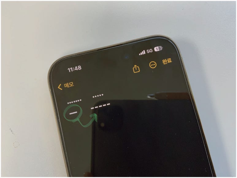빼기 부호인 (-) 선을 연달아 눌러도 켜져있을 때는 하나의 선으로 이어지는 것을 확인할 수 있다. 하지만 비활성화 하고 나서부터는 모두 각기 별개로 타이핑이 되기 때문에 이 부분으로 확인 하는 것도 가능하다.