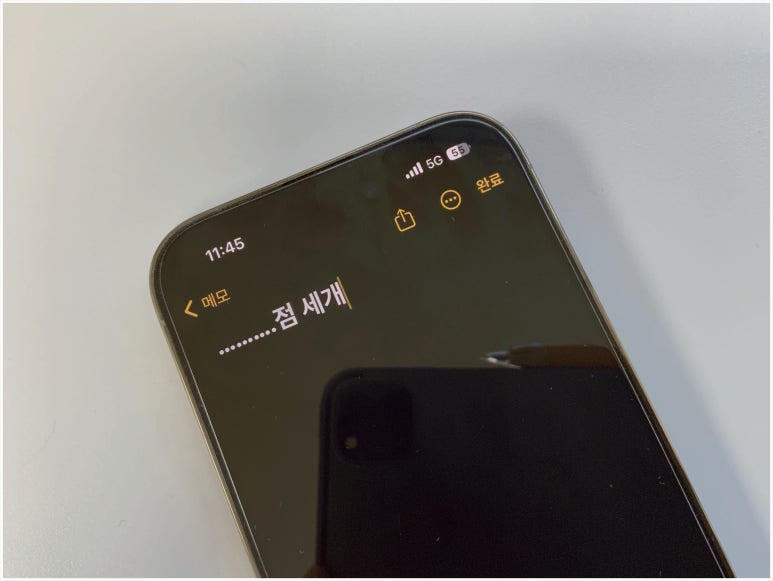 변경하기 전에는 마침표를 연달아 눌렀을 때 3개씩 그룹이 되어있는 모습을 볼 수 있다. 물론 자세히 봐야 보이지만 만약 표시가 잘안나서 모르겠다면 반대로 지워보면 된다.
