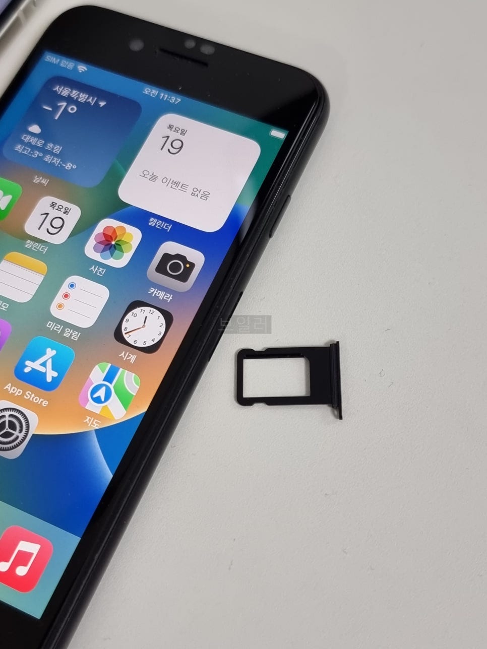 이제 아이폰으로 유심을 교체하기 위해서는 아이폰 유심 트레이를 빼내야 합니다. 마찬가지로 아이폰 좌우측에 유심 트레이가 위치하며 유심핀을 이용해 트레이를 빼냅니다.