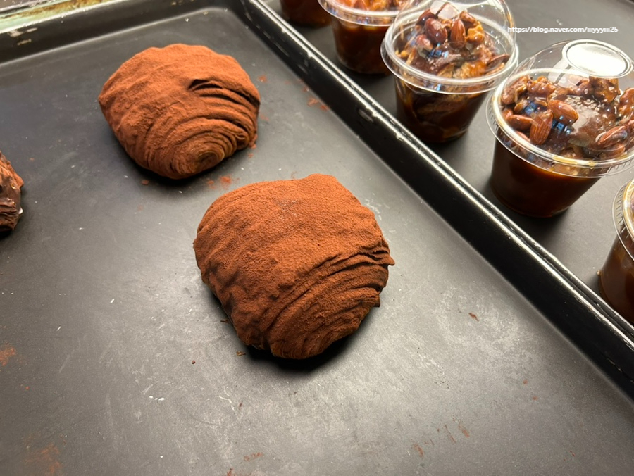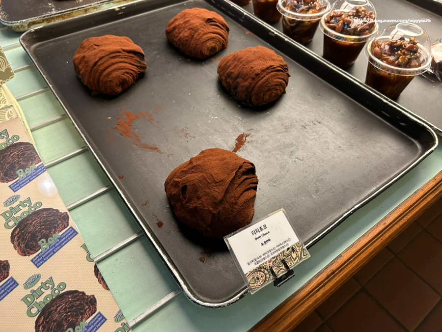 최근에 리뷰를 위해 아우어 베이커리를 방문했다. 흩어져 있는 베이커리를 한 번에 담고 싶었다. 하지만 동서남북으로 흩어져 있는 걸 찍기엔 이쁘게 안 나오더라. 그럴 때는 한 가지만 잡고 확대해서 찍어보는 거. 통일성도 갖춰져있고, 무엇보다 맛있어 보인다. 초코가 꽉 친 비주얼의 더티 초코는 더욱 맛깔스럽게 보인다.
