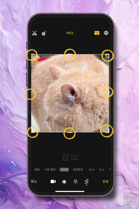 그러면 여러 가지 비율로 화면을 조절할 수 있는데 일반적으로 많이 쓰이는 정방형이나 16:9, 5:4와 같은 비율들을 제공한다. 때문에 섬네일로 사용하려 한다면 직접 조절하지 않고도 쉽게 조절이 가능하다.