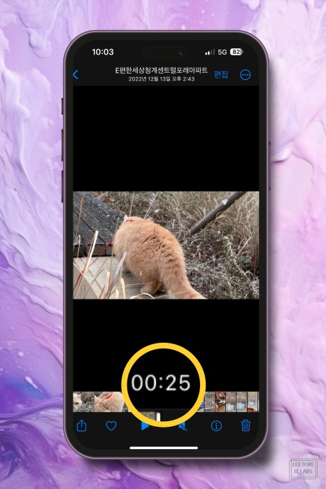 아이폰 사진 앱을 실행 후 여러분들이 편집하려고 하는 영상을 하나 선택한다. 필자는 테스트를 위해서 우리 집 고양이 영상을 편집해 보도록 하겠다.
