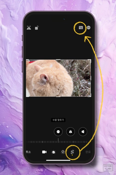 다시 원하는 영상을 선택 후 <편집> 화면으로 전환해 보자. 이번에도 하단에 4개의 도구 아이콘이 보일 텐데 오른쪽에 있는 아이콘을 선택한 뒤 상단에 사각형이 나누어진 아이콘을 눌러보자.