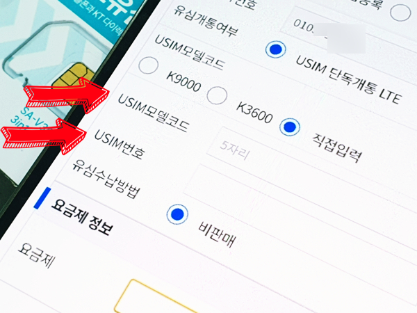 6) 구입한 USIM에 대한 정보를 입력한다. 아래의 이미지를 참고해서 적으면 된다.