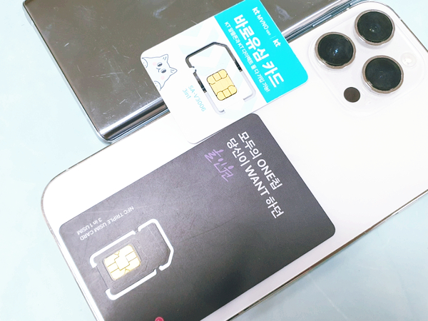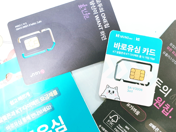 KT는 근처 이마트 24, CU에서 민트색 표지로 구입한다. 가격은 8,800원으로 구성이 되어 있으며, 고양이 모양을 확인하면 된다. 또한 [앤텔레콤 멤버십 K 망] 앱을 통해 당일 퀵 배송 신청까지 가능하니 활용하면 도움이 될 것이다.
