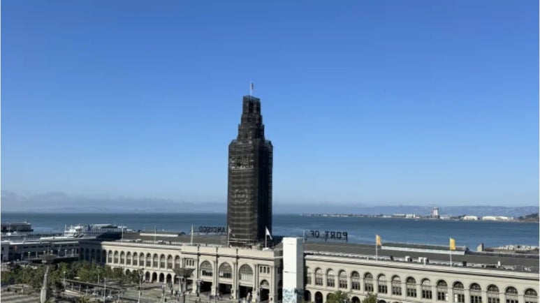 iPhone 15 Pro Max 메인 카메라로 줌 없이 촬영한 샌프란시스코 페리 건물의 동일한 사진. 키프 레스윙/CNBC