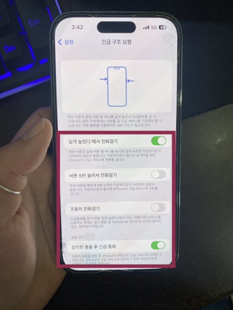 만약 이전에 긴급 구조 요청 기능을 활성화되지 않았다면 설정에서 긴급 요청 기능을 찾아서 활성화해야 합니다.