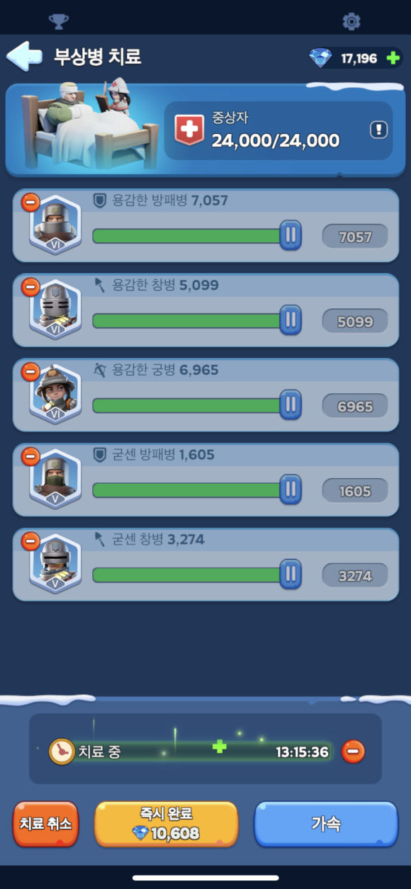 * 기존의 훈련된 낮은 등급의 병력은 별도의 진급 훈련이 가능하며, 병력의 구성 및 조합도 원정에 필요한 요소입니다.