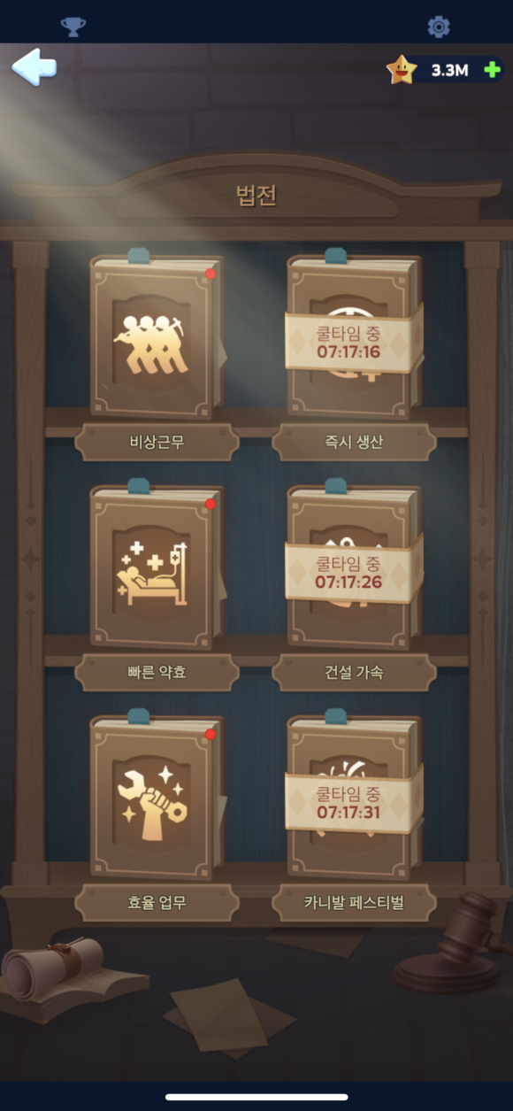 [마을 발전을 위한 테크 트리는 물론이고 법전을 발효하여 플러스 버프 효과를 얻을 수 있습니다]
