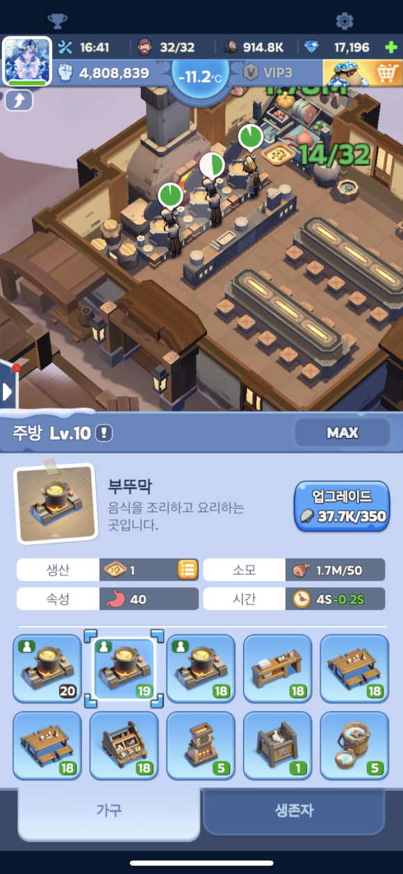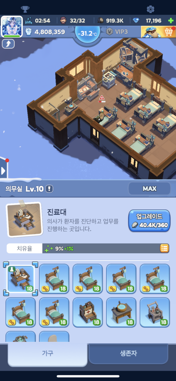 [시설의 업그레이드를 위해서는 일정부분의 소속 파츠들을 업그레이드 해야되고, 영입한 생존자들을 적절히 배치할수 있습니다]