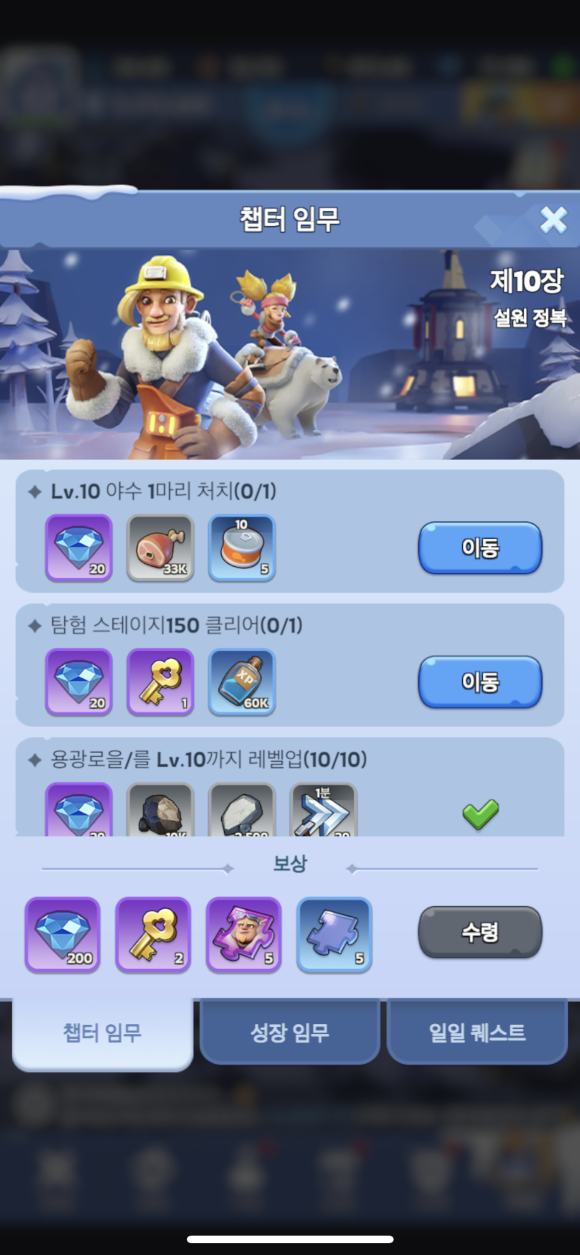 [지역탐사는 '생존자 구출(병력모으기)','몬스터 처치' 등으로 구분되는데, 영웅의 등급을 올리는 조각 모으기에 효율적인 퀘스트 입니다]