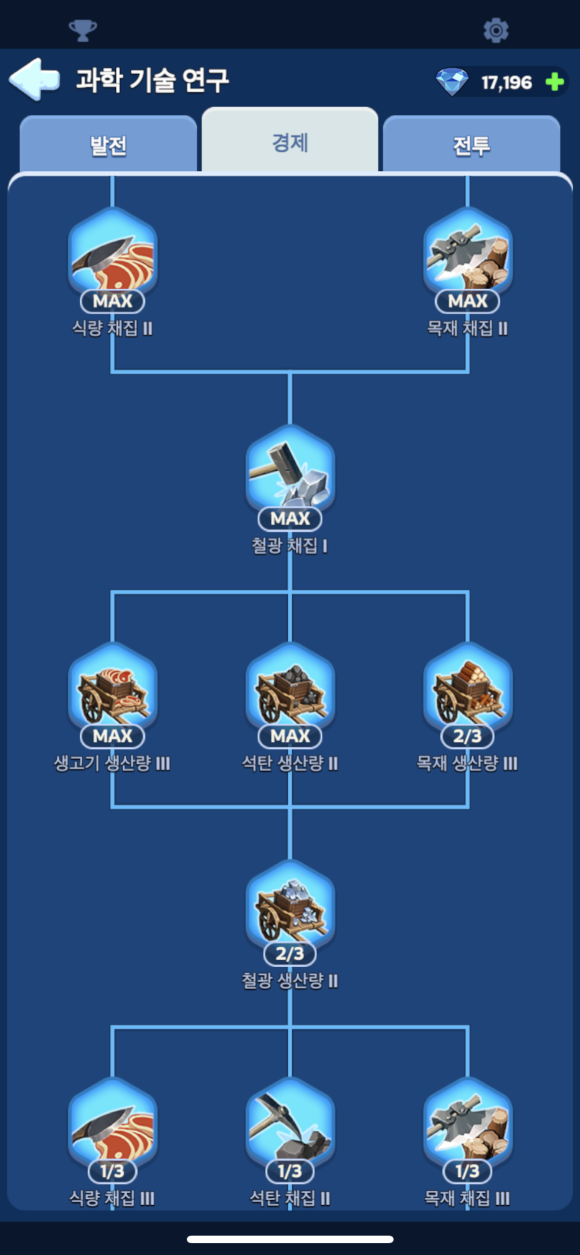 연맹원들이 서로의 건물 건설과 기술연구의 시간을 도와주면서 시간을 단축할 수 있고, 비교적 큰 시간적 차이를 보여줍니다.