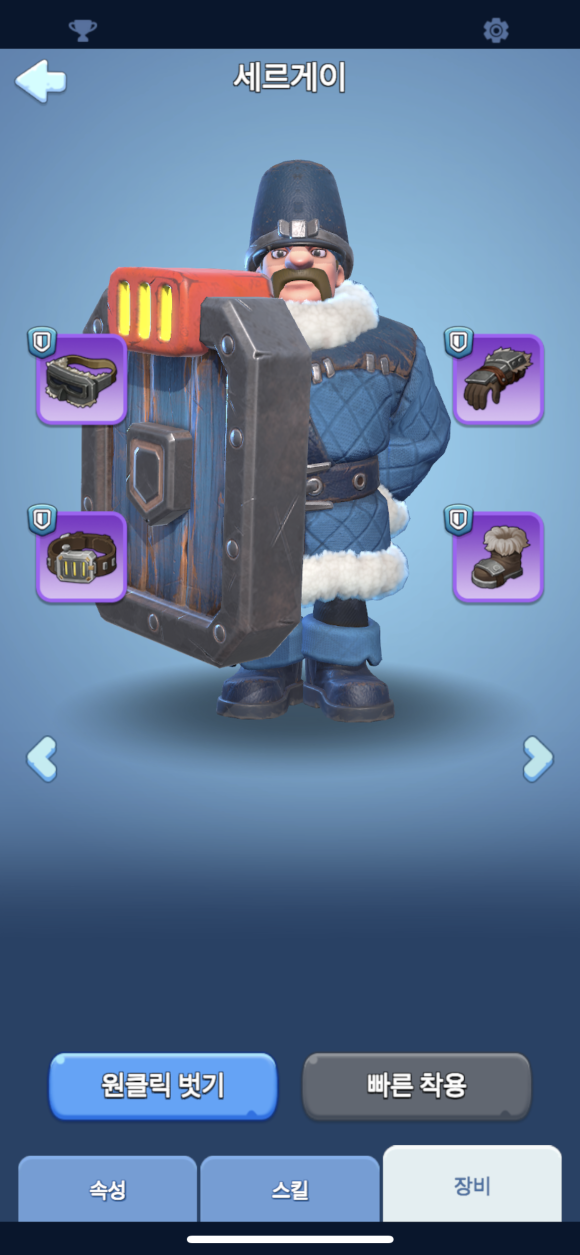 * 영웅에는 장비를 착용시켜 줄 수 있는데, 업데이트가 안되서 그런지 몰라도 종류가 없어 보였습니다.