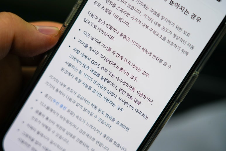 이는 온도가 낮아지면 자연스럽게 원상태로 돌아오게 되니 잠시 스마트폰을 내려놓고 기다리시길 추천드립니다. 만약 급하게 사용을 해야한다면 재부팅 후 사용이 가능하지만, 재부팅 이후 동일하게 스마트폰을 사용하게 될 경우 보다 큰 문제로 이어질수 있다는점 알려드립니다. 오늘도 좋은하루 되시길 바라며, 감사합니다.