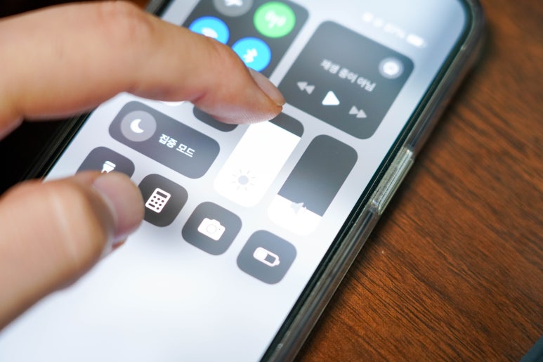 아이폰을 처음 사용하신다면 밝기 조절 방법에 낯설게 느껴질수 있습니다. 하지만 이는 너무 간단하게 해결할수 있는데요. 오른쪽 상단을 손가락으로 눌러주시고 아래로 스와이프 해주시면 제어센터가 나타나는데, 이곳에서 태양 모양의 아이콘을 위아래로 조절 시, 간단한 밝기 조절을 진행할수 있습니다.