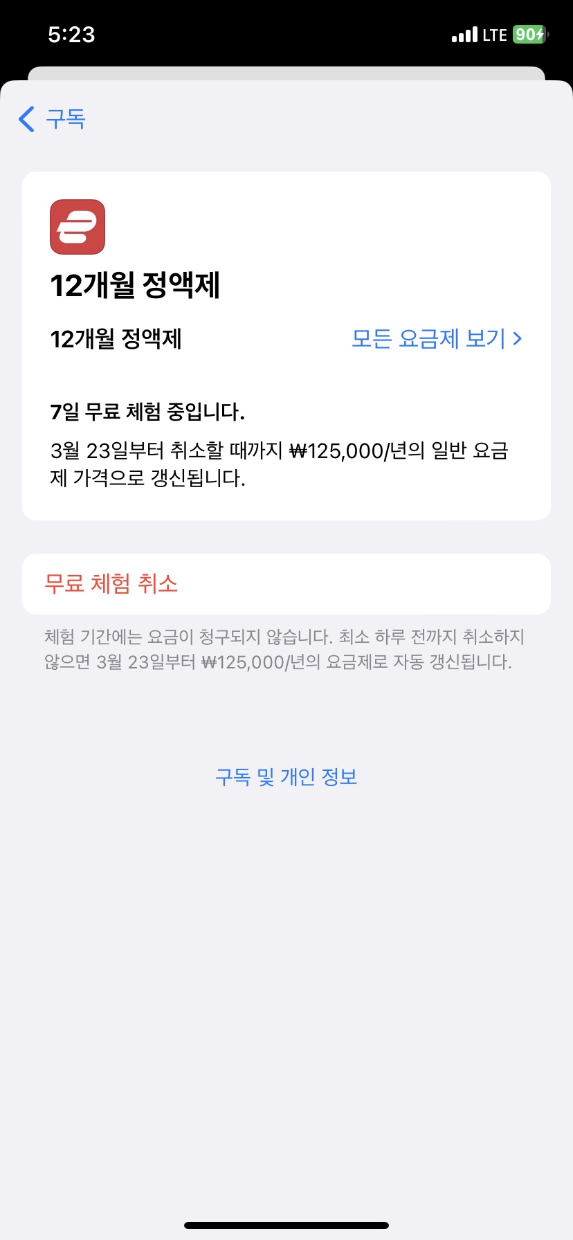 5. 완료 후 결제되는 것을 방지하기 위하여 무료 체험 구독을 취소합니다.