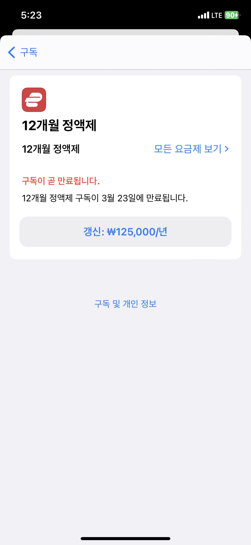구독 취소하지 않는 경우에는 1년 단위로 결제가 되오니 유의하시기 바랍니다.
