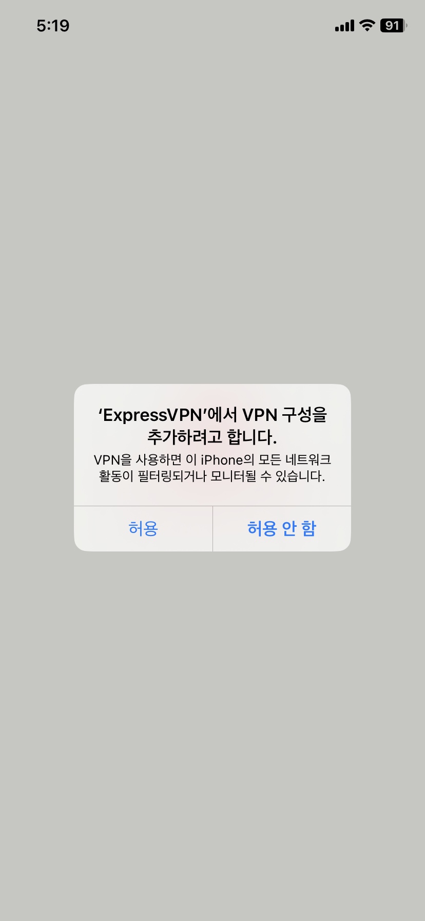 Express VPN을 사용하기 위하여 필요한 권한을 설정하는 순서입니다. 꼭 사용자의 용도에 맞게 허용 또는 허용 안 함 설정해 주세요.