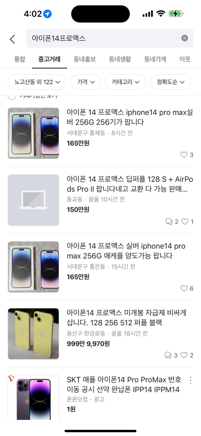 다행히 내가 번개장터에서 구매한 아이폰14 pro max는