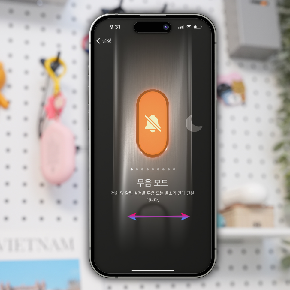 눌러서 변경하는 차이만 있을 뿐 동일하고요. 대신 무음 기능이 아닌 집중모드나 카메라, 음성 메모 등 다른 기능으로도 설정할 수 있는 액션 버튼입니다.