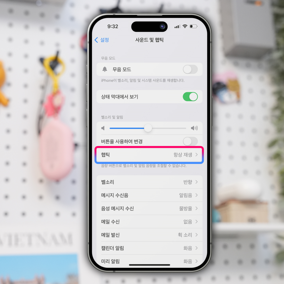 2. 이어서 <햅틱> 항목을 탭 합니다.