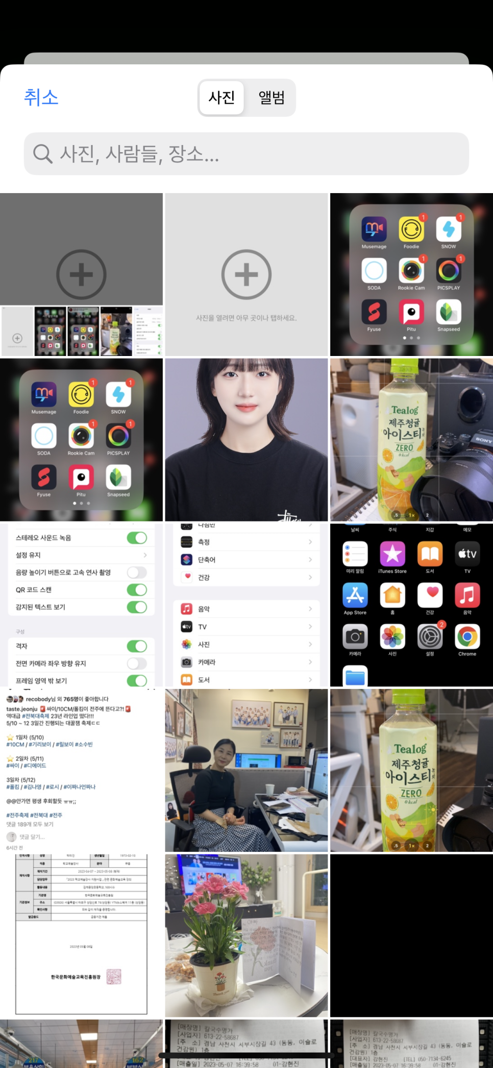 여기서 플러스를 누르시면 갤러리에서 사진을 불러올 수 있어요.