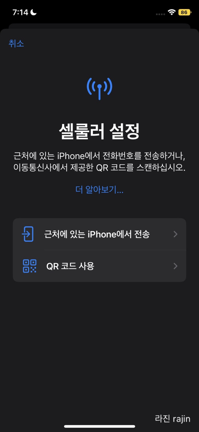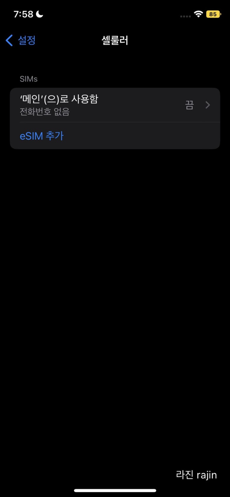 일단 나는 등록되어 있는 유심 및 이심이 모두 없는 상태의 핸드폰이며, 인천공항에서 이심 등록했다.