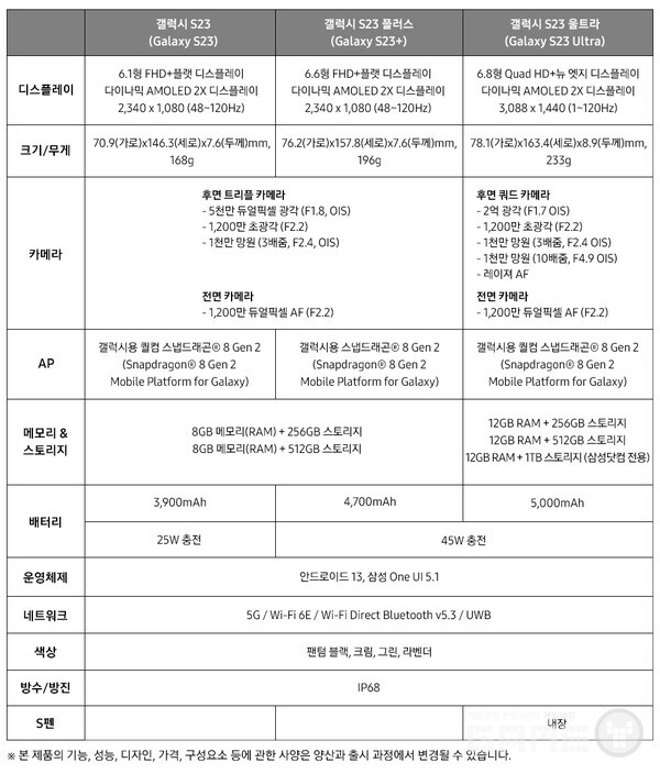 ◇ 갤럭시 S23 시리즈의 다른 기능과 성능은?