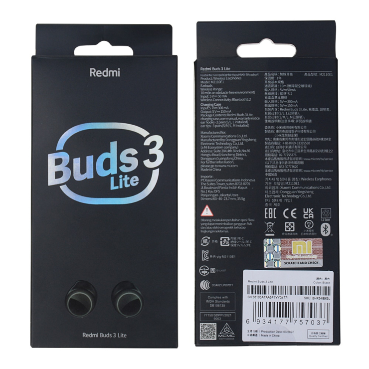 Redmi Buds 3 Lite: 블루투스 5.2; 배터리 수명 18 시간