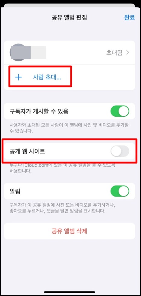 아이폰 공유앨범 초대