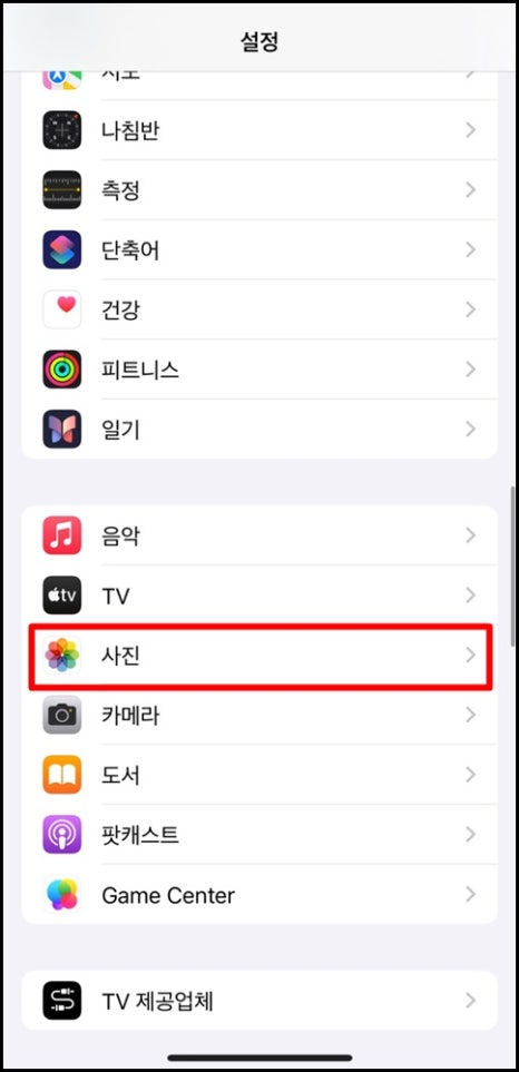 1. 아이폰 설정>사진 순서로 접속해 주세요.