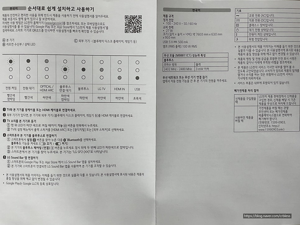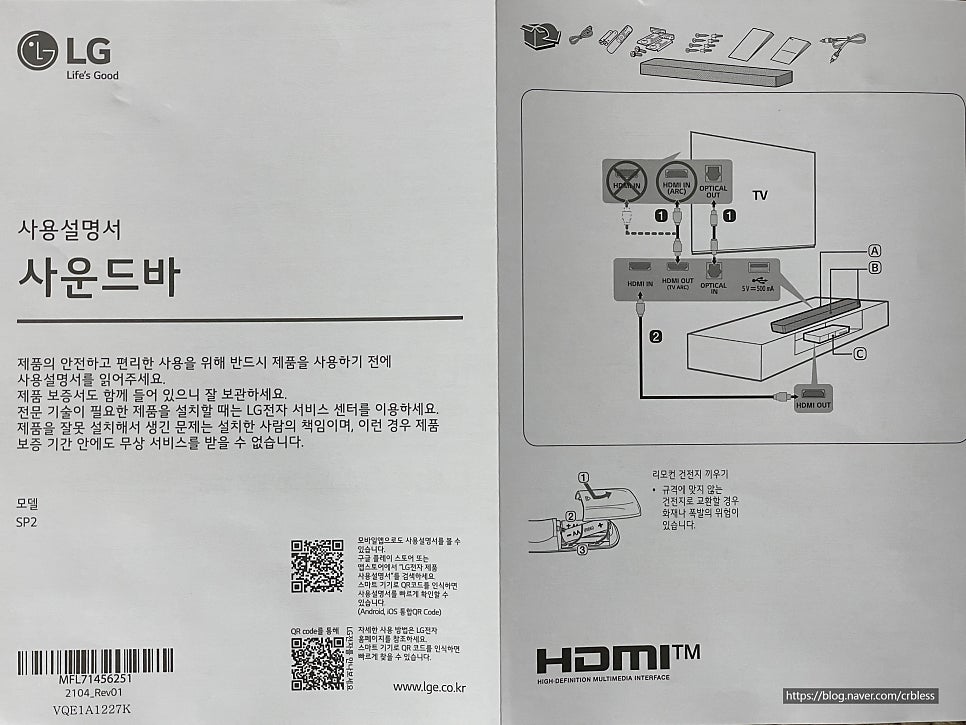 sp2 사운드바 설명서는 LG전자홈페이지 또는