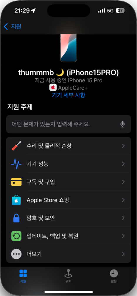 Apple 지원 앱에서 문제를 선택하고 서비스 예약을 진행합니다.
