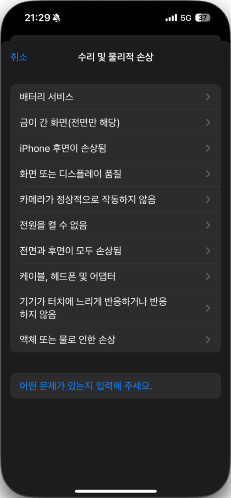 화면 파손: 디스플레이 손상이 있을 때, 화면 교체 수리가 가능합니다.