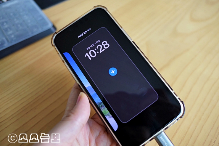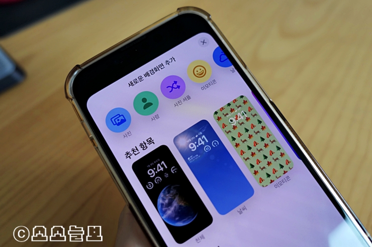 워치 배경화면과 같이 이제 폰 잠금화면을 내가 원하는 방식으로 다양하게 꾸며서 선택할 수 있게 되었다. 자금화면 위를 꾹- 누르면 편집 기능을 사용할 수 있는데 폰트와 컬러, 디자인 등을 선택할 수 있고 다양한 디자인을 골라두고 그때 그때 골라서 사용할 수도 있다.