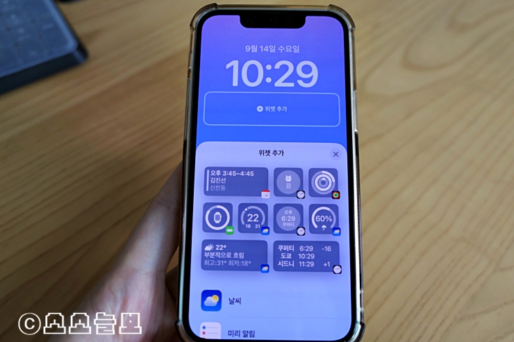 이 외에도 배터리잔량을 숫자로 표시되는 부분은 내 폰이 iPhone 13미니라서 적용이 되지 않지만 후반기에는 적용될 예정이라고. 미니 외에는 표시가 되는걸로 알고 있다.