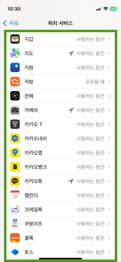 이 정보를 참고하여 굳이 위치정보 권한이 필요없는 앱들은 사용안함으로 옵션을 바꿔주자.