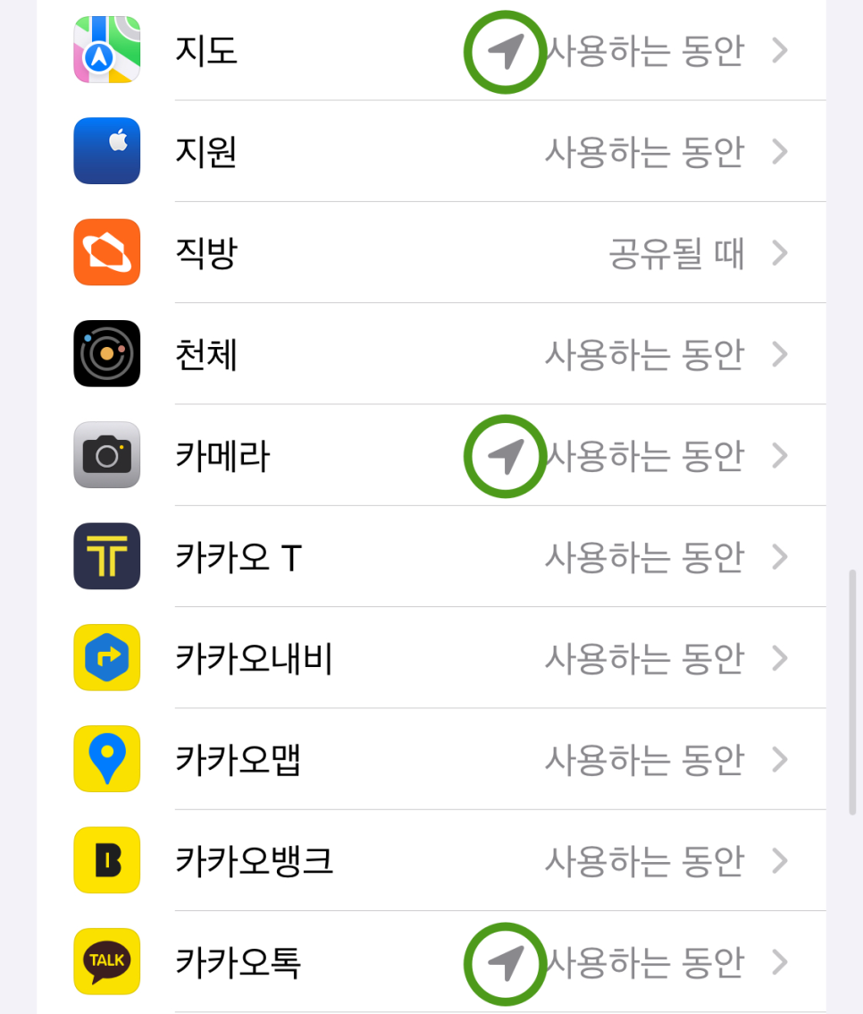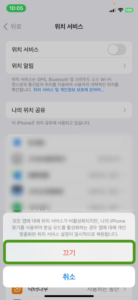 위의 방법대로 하면, 아이폰에 설치된 모든 앱이 내 위치정보를 사용하지 않는다.