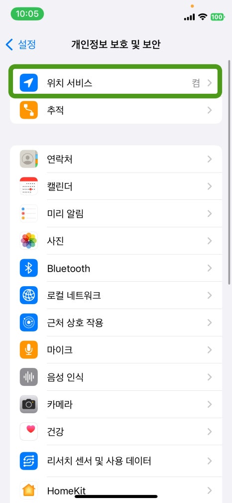 2. 최상단의 '위치 서비스'를 선택한다.