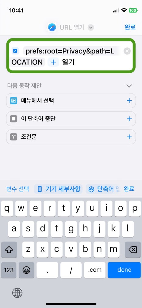가장 쉬운 방법은 필자가 미리 만들어 둔 단축어 링크를 클릭하는거다.