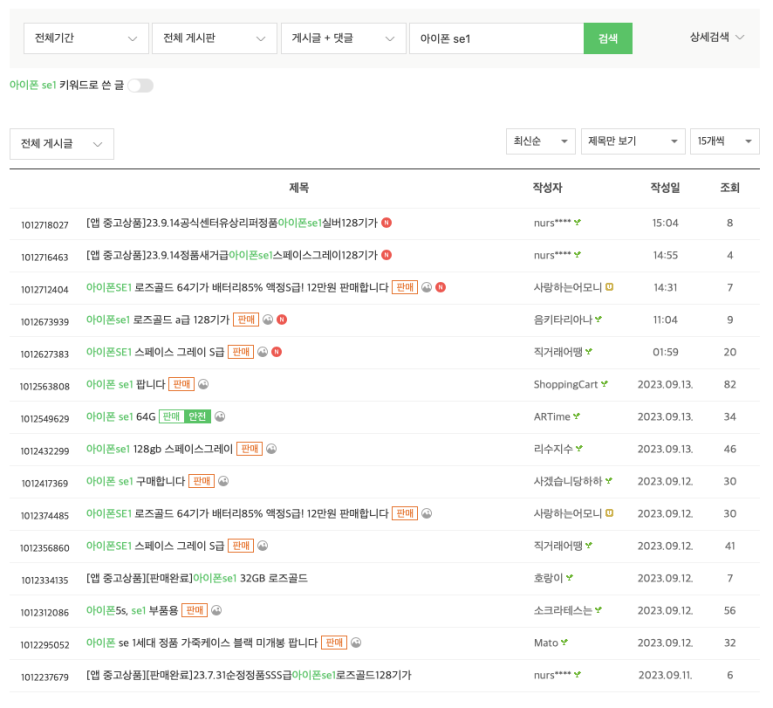 하지만 중고나라나 당근마켓, 번개장터 등의 중고 플랫폼을 보면, 아이폰 se1이 순정품인지 혹은 알리발 재생품인지 고지하지 않고 판매하는 사람들이 많다.
