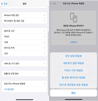 아이폰 내부적인 문제일 경우는 해당 설정으로만 해결이 되지 않기 때문에