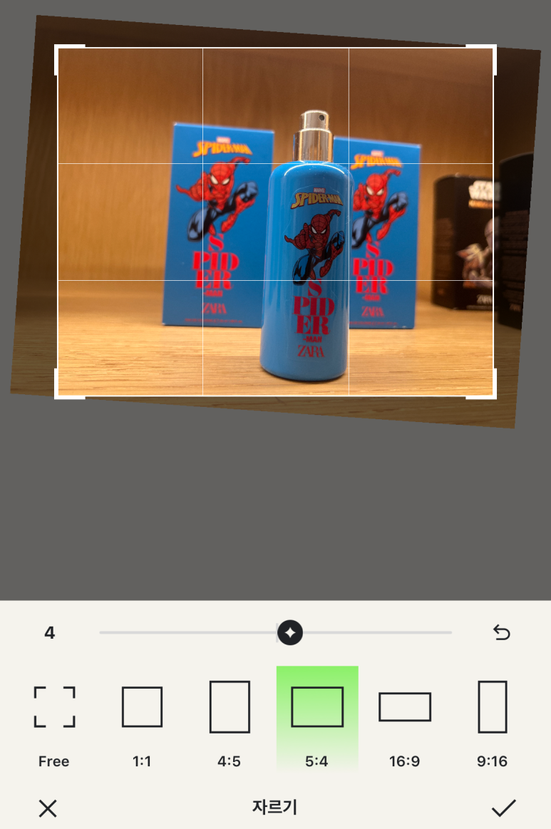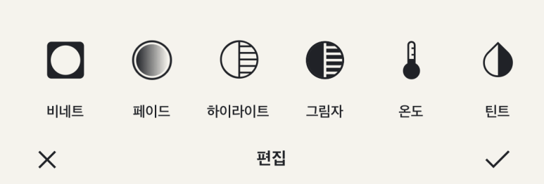 편집 메뉴에서는 밝기, 채도, 색온도 등을 조절할 수 있다. 사진이 전체적으로 어둡거나 할 때는 여기서 밝기 조절이 가능한데, 꽤나 섬세하게 조절되어서 괜찮았다.
