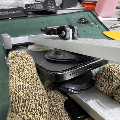 아, 단점을 말씀드리기 전에 장점이 하나 더 있습니다. 기존에는 아이폰 뒷면 수리 또는 하우징 교체 작업을 하려면 부품을 모두 떼어내거나 부품을 새로운 하우징으로 옮기는 작업을 해야 했기 때문에 이 과정에서 멀쩡한 액정이 파손되는 이슈가 있었죠. 하지만 지금은 그럴 일이 없습니다. 하우징(측면 프레임 교체) 교체가 아닌 뒷면 깨짐으로 후면 유리만 교체해야 되는 경우(지금 보여드리고 있는) 액정을 열거나 부품을 떼어낼 필요가 없기 때문에 뒷면 수리할 때 액정이 파손되는 이슈는 더 이상 발생하지 않습니다. 이것도 아주 큰 장점이라고 볼 수 있습니다.