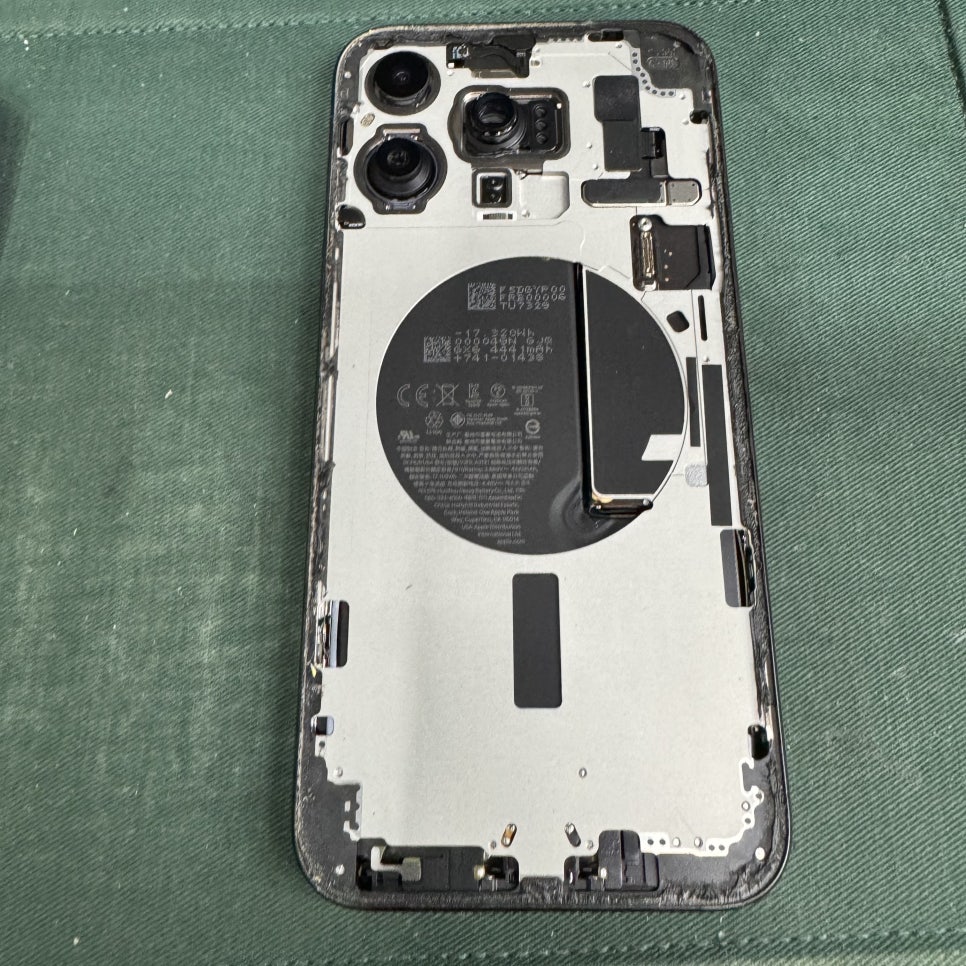 아이폰 15프로 맥스(PRO MAX)는 하우징 따로 후면유리 따로입니다. 각각의 부품으로 구성되어 있기 때문에 후면 유리가 파손되었다면 파손된 후면유리 부품을 액정 교체하듯 교체해 주면 됩니다. 그래서 아이폰 14, 14플러, 그리고 아이폰 15시리즈는 뒷면수리 하는데 20~30분 정도면 충분합니다.