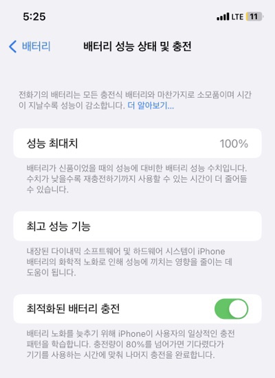 지원 앱을 통해 배터리 성능이 떨어진 걸 확인해주신 후,