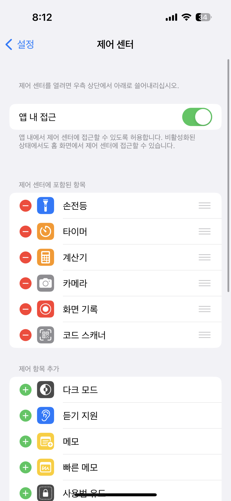 계산기, 코드 스캐너 등과 같은 항목을 추가하면 빠르고 직관적으로 이용할 수 있다.